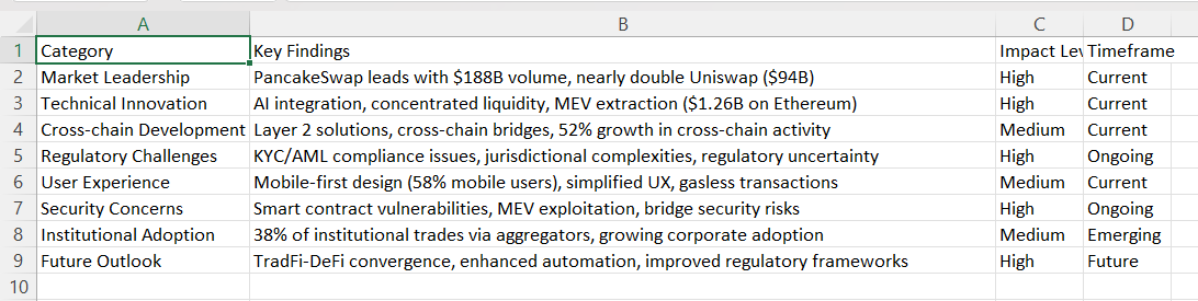 The decentralized exchange landscape in 2025 represents a mature, sophisticated ecosystem that has successfully addressed many early challenges while creating new opportunities and complexities. PancakeSwap's emergence as the volume leader with $188 billion monthly trading demonstrates how strategic focus on multi-chain compatibility, user experience optimization, and cost efficiency can reshape competitive dynamics in decentralized finance.